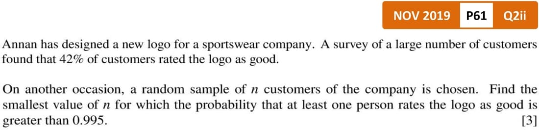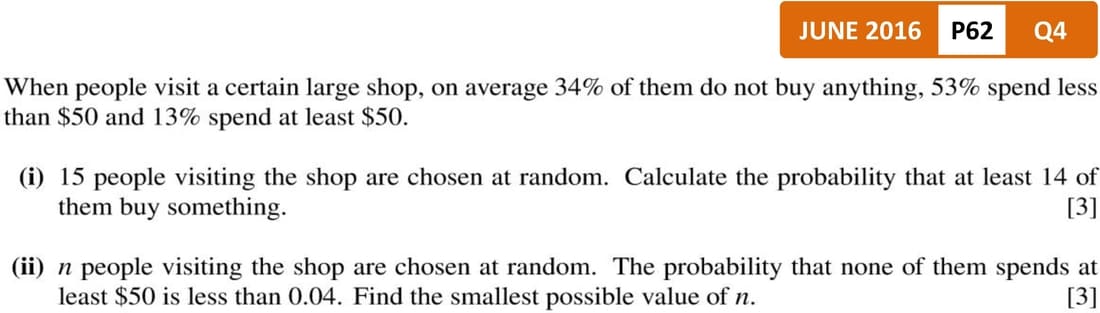 Past Papers Topic Wise QuestionsA Level: Mathematics 9709 - Probability and Statistics 1Binomial Distribution | Log Application in Binomial Distribution