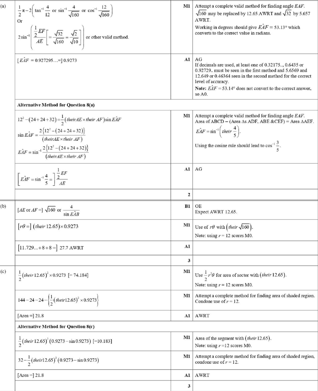 Marking Scheme : 8