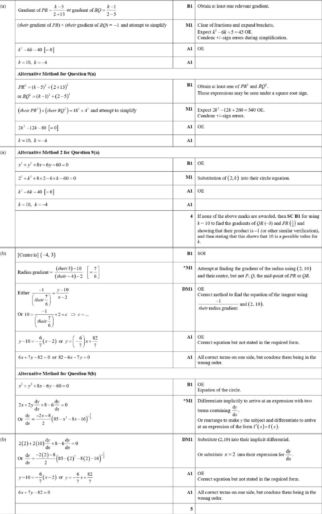 Marking Scheme : 9