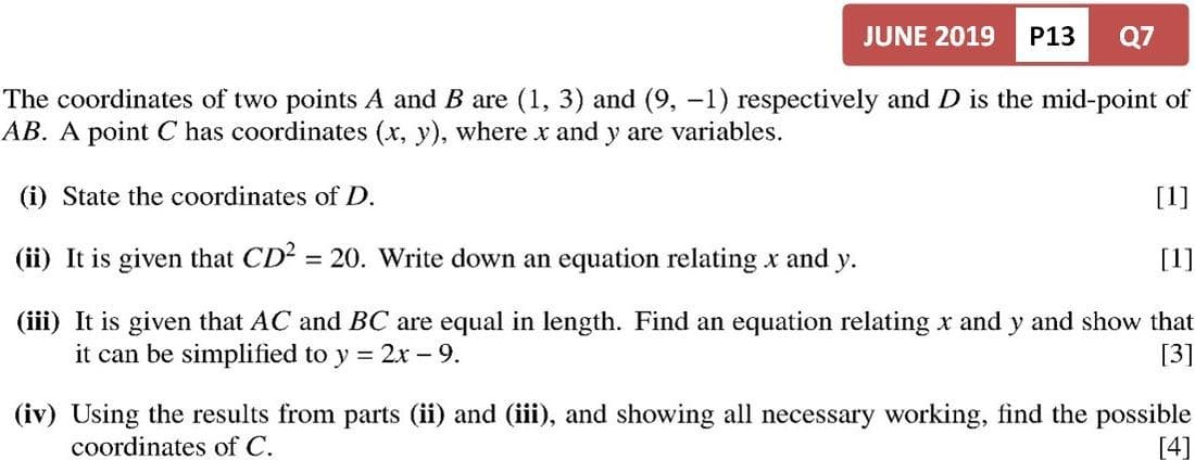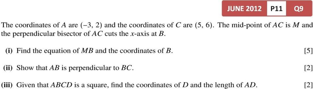 Coordinate Geometry / Questions without Diagram