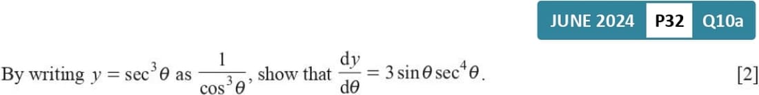 If y = tan x, then \(\frac{dy}{dx}\) = sec
