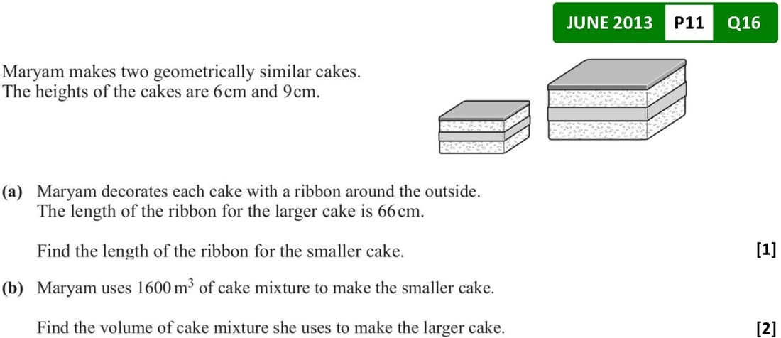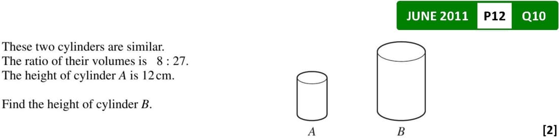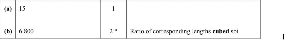 \(\frac{Volume_1}{Volume_2} = \left(\frac{l_1}{l_2}\right)^3\)