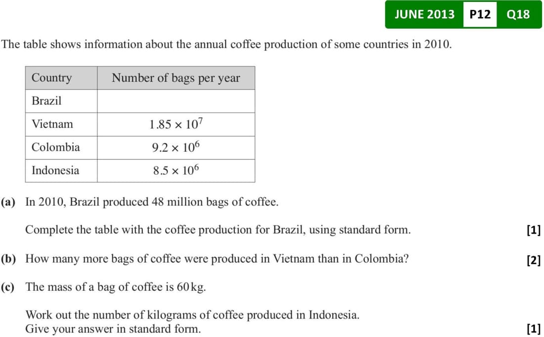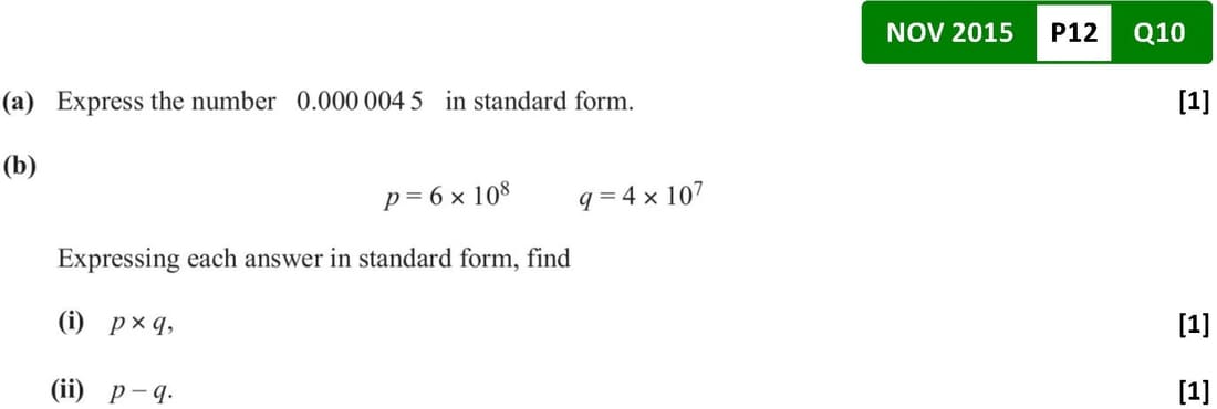 Numbers / Standard Form