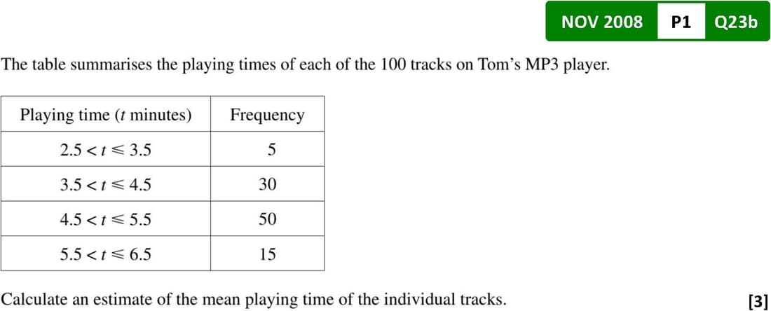 \(\overline{x} = \frac{\sum fx}{\sum f}\)