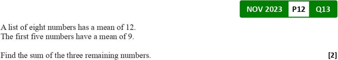 \(\overline{x} = \frac{\sum x}{n}\)