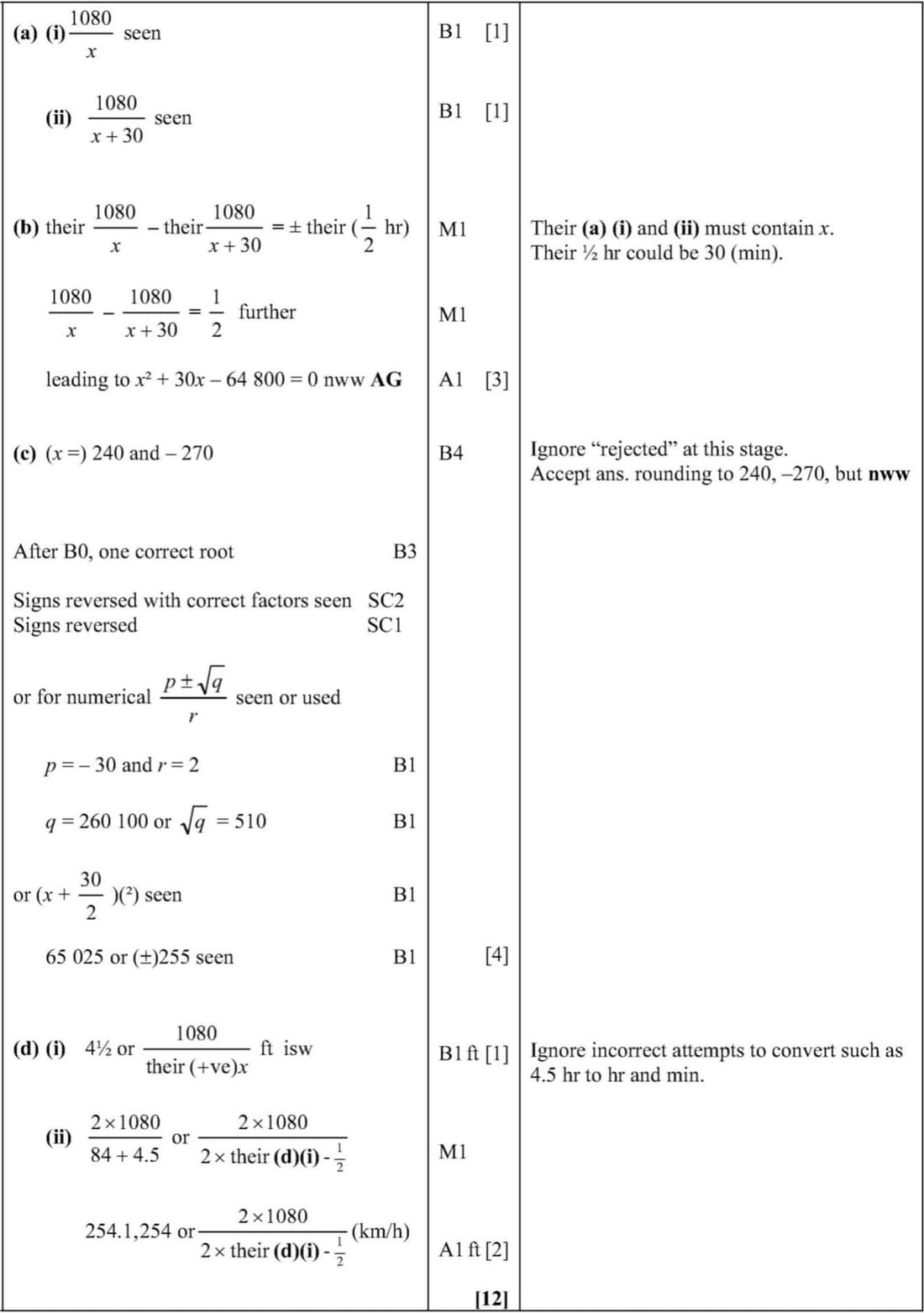 Marking Scheme : 12