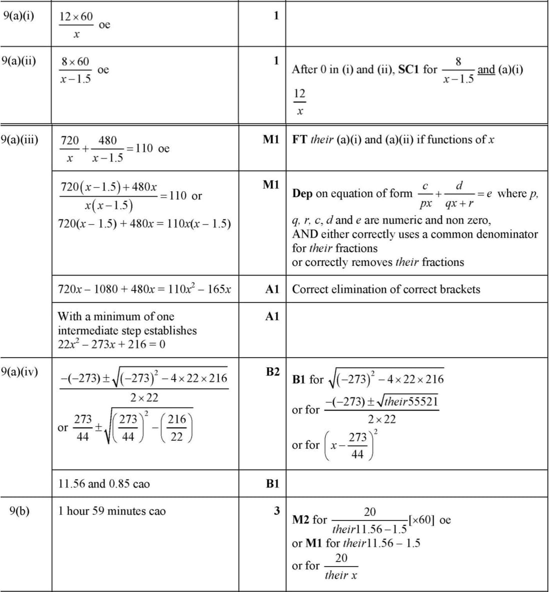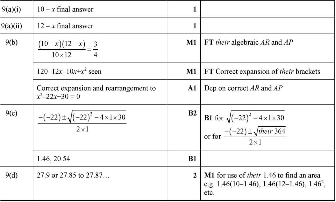 Marking Scheme : 9