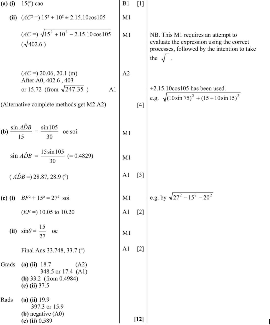 Marking Scheme : 12