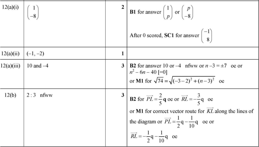 Marking Scheme : 12