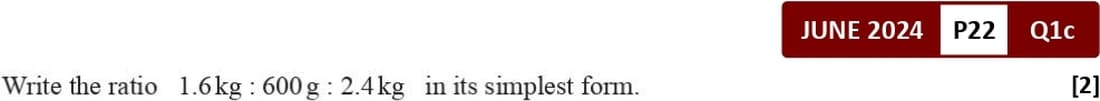 To find the ratio of two quantities, they must first be expressed in the same units. Ratio has no unit.