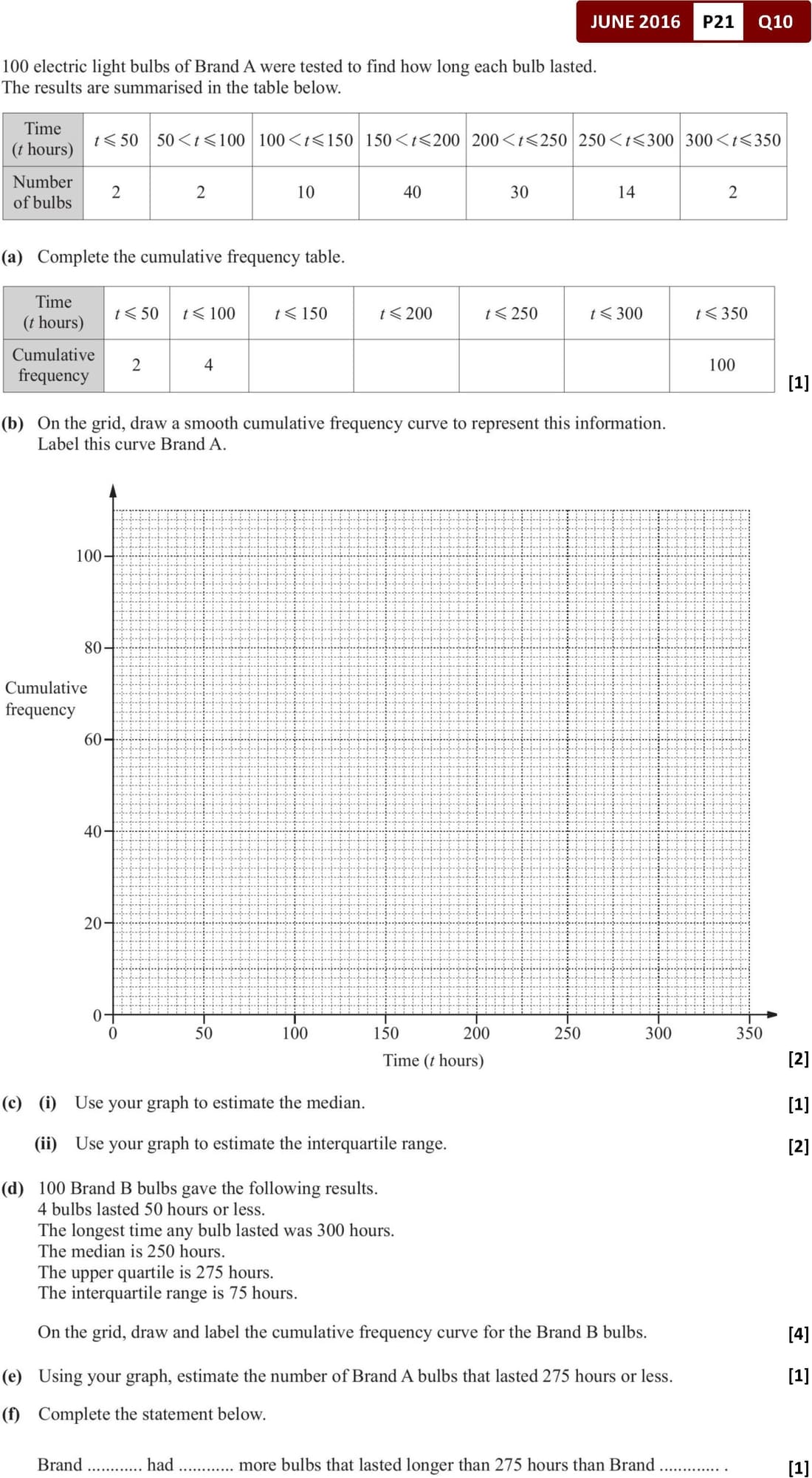 Statistics / Cumulative Frequency Graph