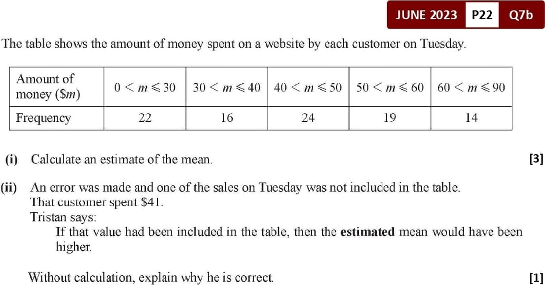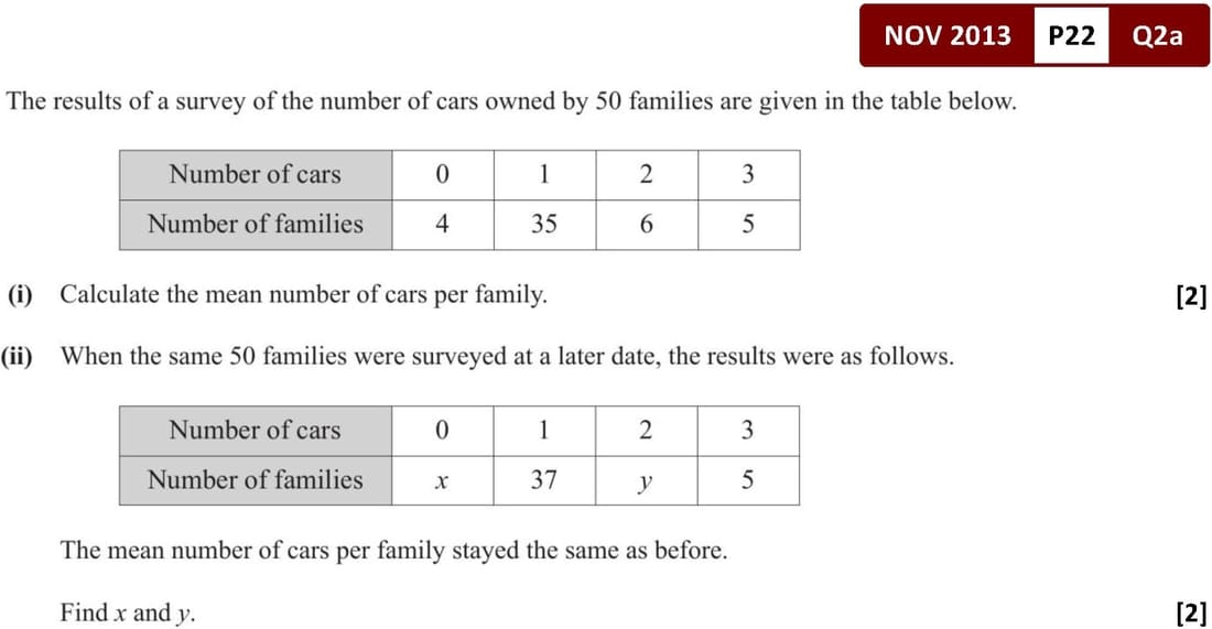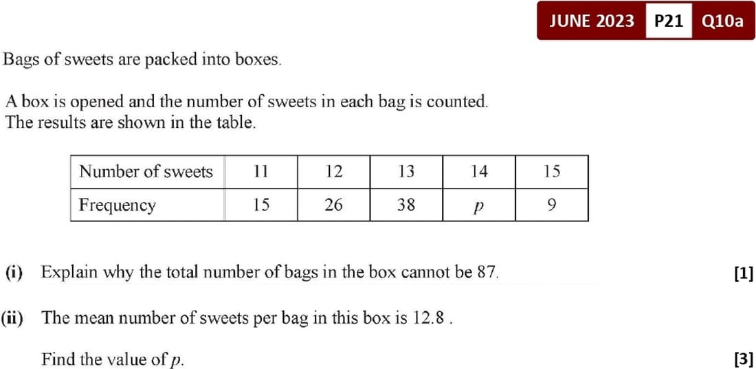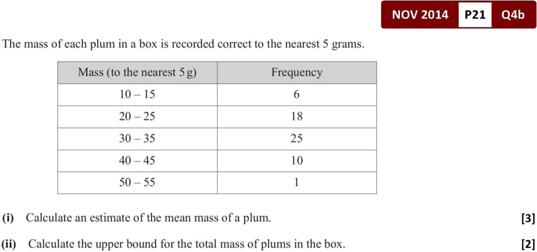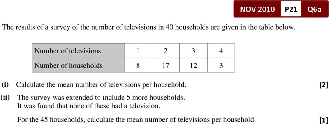 \(\overline{x} = \frac{\sum fx}{\sum f}\)