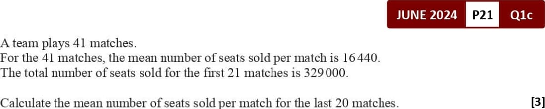 \(\overline{x} = \frac{\sum x}{n}\)