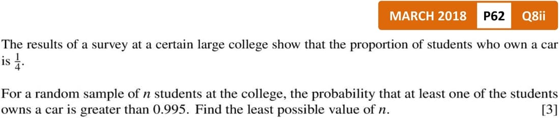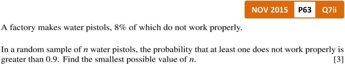 Past Papers Topic Wise QuestionsA Level: Mathematics 9709 - Probability and Statistics 1Binomial Distribution | Log Application in Binomial Distribution
