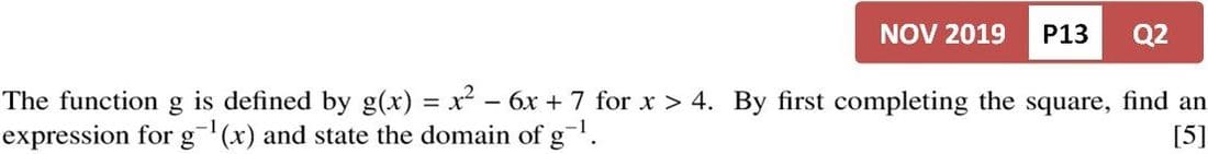 Past Papers Topic Wise QuestionsA Level: Mathematics 9709 - Pure Mathematics 1Functions | Domain and Range of Inverse Functions