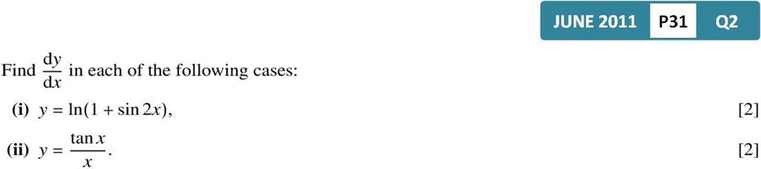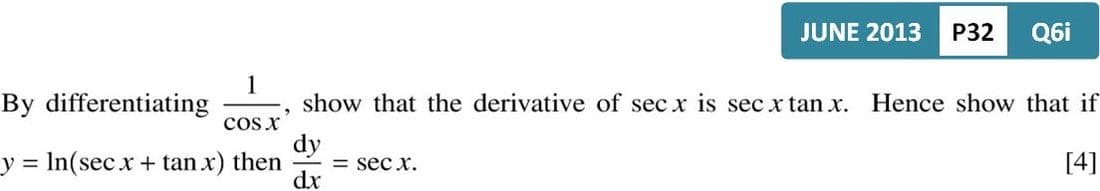 If y = tan x, then \(\frac{dy}{dx}\) = sec