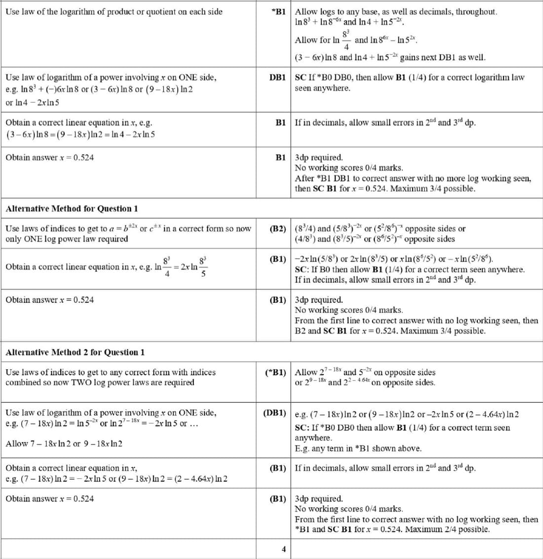 Marking Scheme : 4