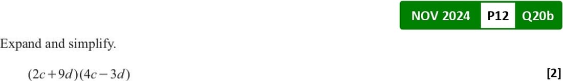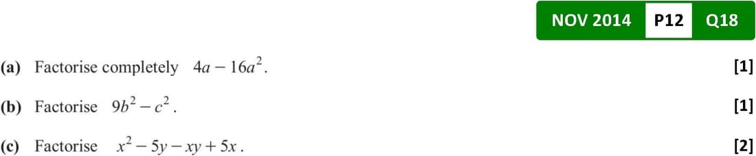 Past Papers Topic Wise QuestionsO Level: Mathematics D 4024 - Paper 1Algebra | Expand and Factorize