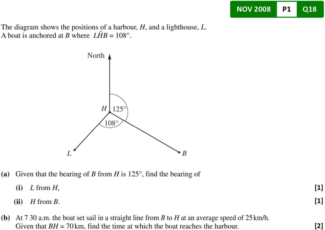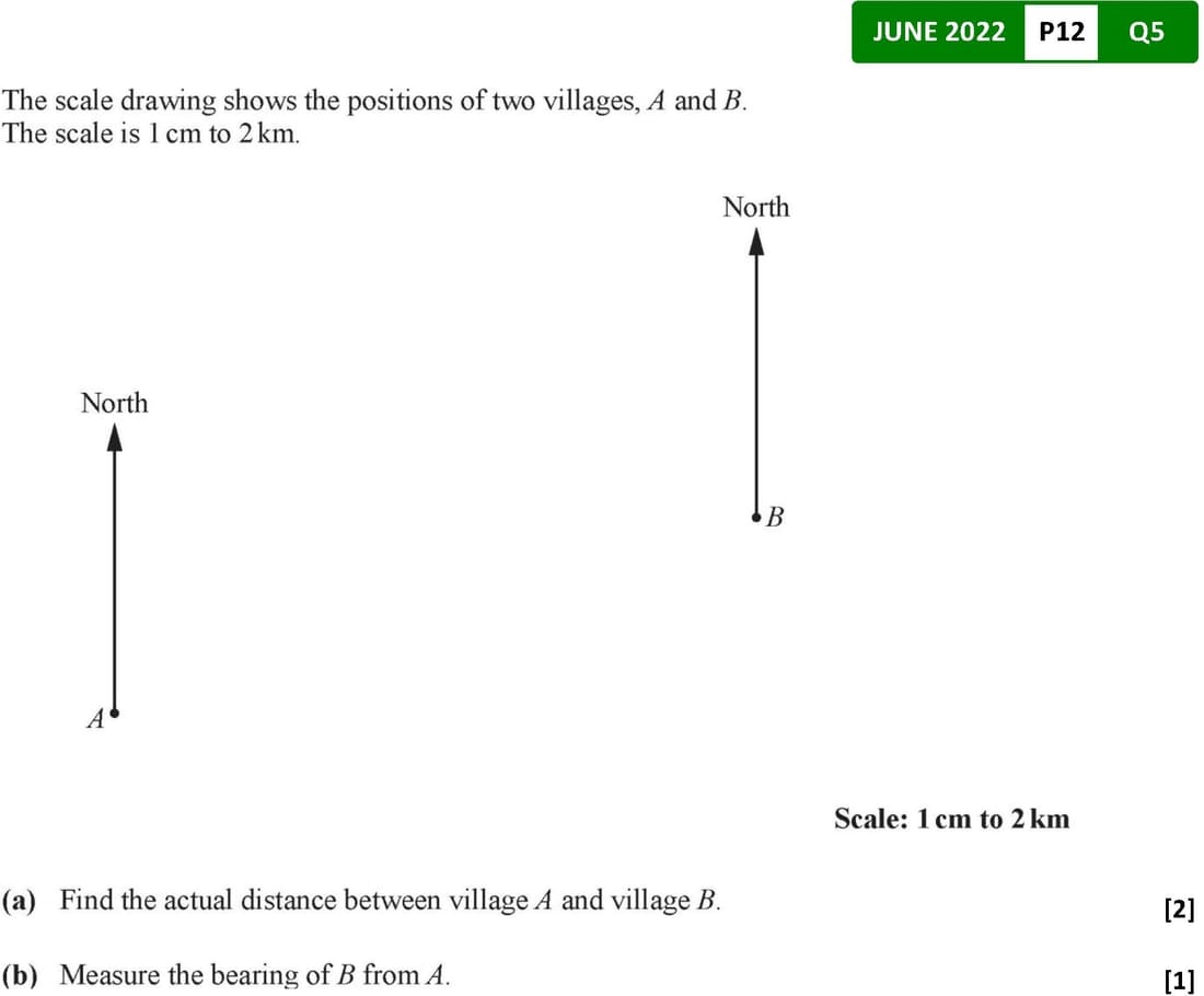 Bearing is always measured from the North and in a clockwise direction