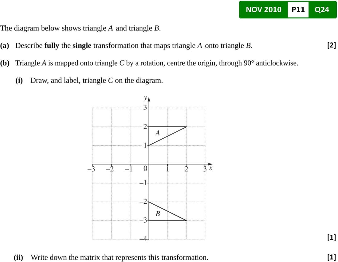 Past Papers Topic Wise QuestionsO Level: Mathematics D 4024 - Paper 1More Topics | Transformation